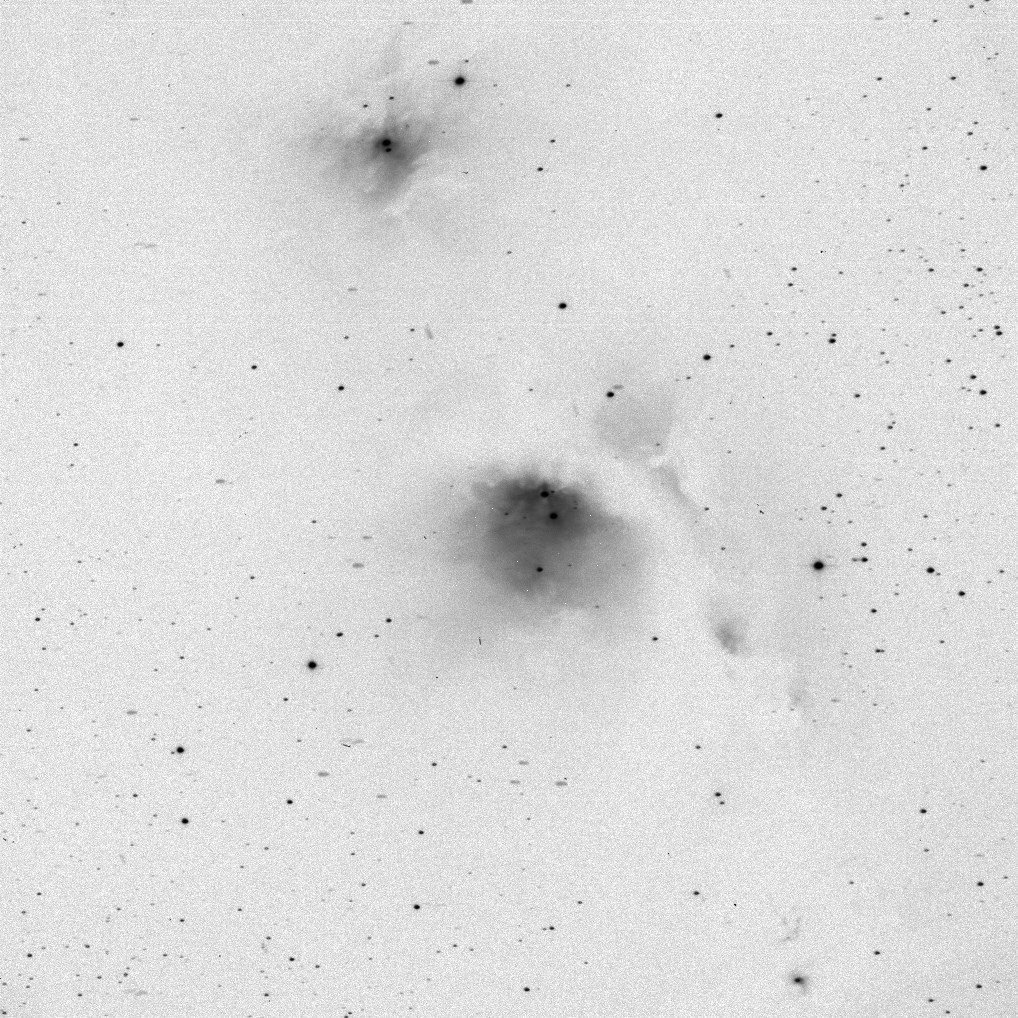 NGC 2071 is up and to the left, and NGC 2064 is down and to the right